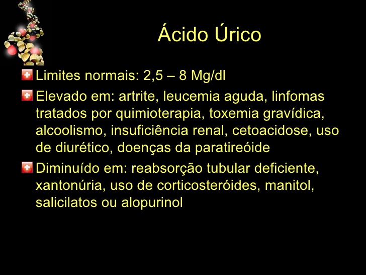 Conclusões acerca do resultado do exame de ácido úrico