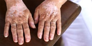 As pessoas portadores de Vitiligo , manchas brancas aparecem na pele em locais onde as células que produzem esse pigmento da pele ou cor foram destruídas.